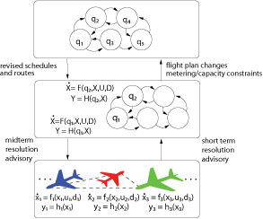 Collision Avoidance Algorithms for AircraftThe goal of the Next Generation Air Transportation System (NGATS) is to increase the capacity of the National AirSpace (NAS) while increasing the efficiency and safety of the airspace. Currently, there are many collision avoidance algorithms that exist or are being developed for different time scales. Even though each individual algorithm may provide safety between the aircraft, when combined to form a hybrid collision avoidance system for all time scales, safety cannot be guaranteed. Therefore to facilitate NGATS, methods need to be developed for analyzing the interaction between airborne collision avoidance systems and tactical separation assurance tools in Air Traffic Control (ATC). Furthermore, procedures need to be designed to guarantee that these collision avoidance and separation assurance tools do not conflict with each other, but rather operate together safely and efficiently. This interoperability of collision avoidance functions is integral to the design of NGATS. |