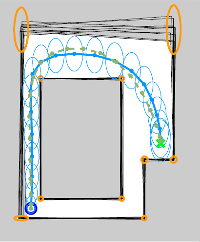 while attempting to follow a pre-planned trajectory through the environment. Since the sensor can only provide